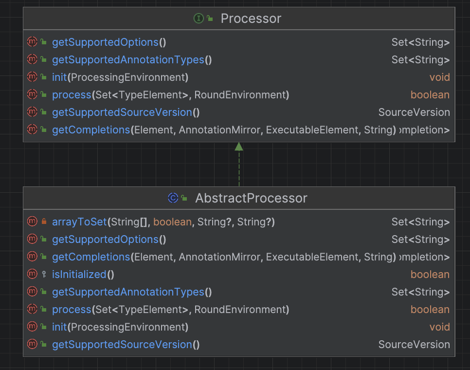 AnnotationProcessor에서 제공하는 대표적인 interface 및 abstract class이다.