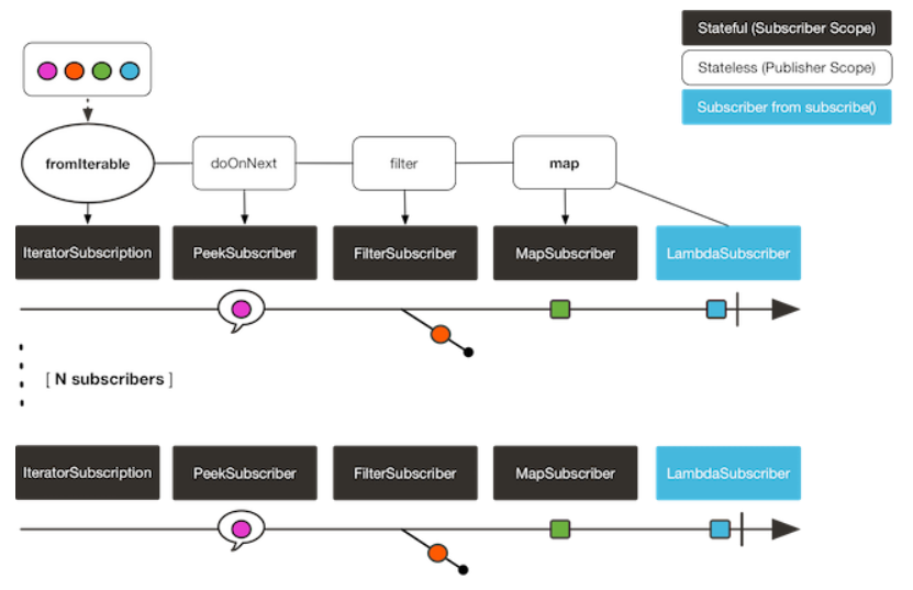 따라서 Subscriber들은 구독 시점의 데이터에 따라서 element 들이 결정된다.