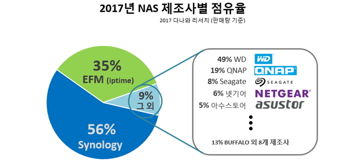 지금은 시놀로지가 국내 시장을 반 이상 점유 중인 것으로 보인다.
